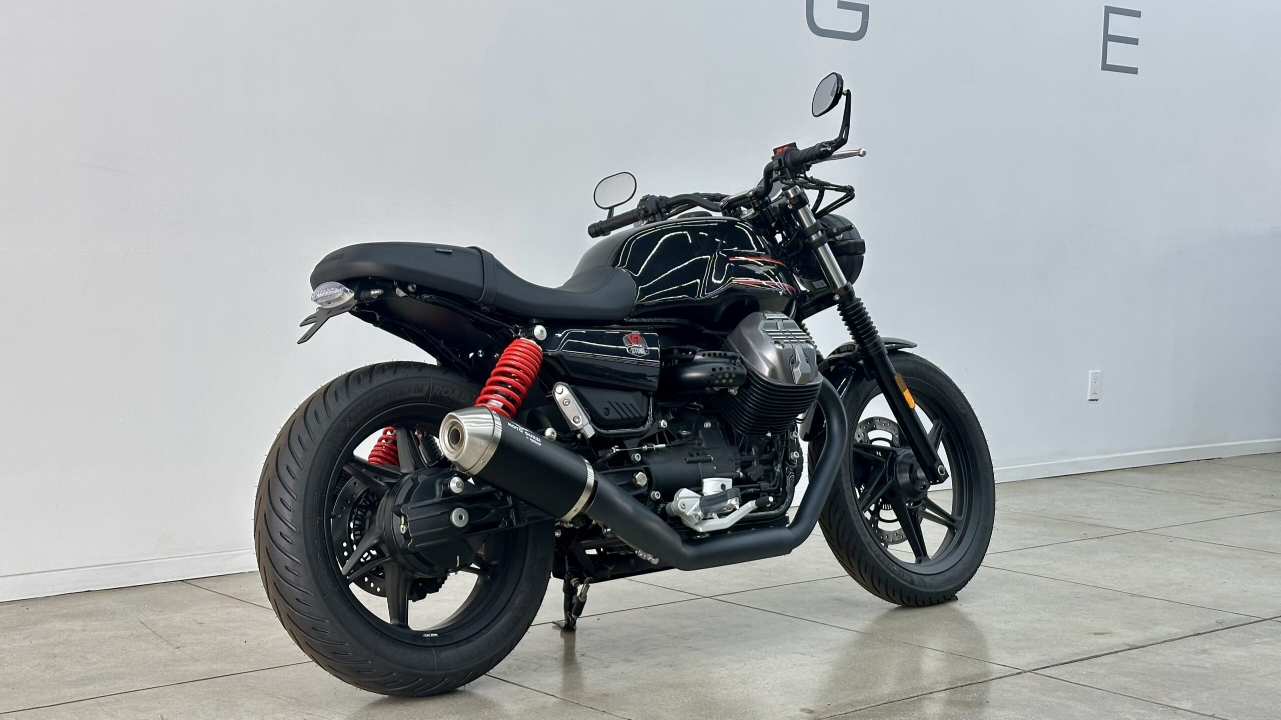 The V7 Stone Special Edition is a visual masterpiece. Its Shining Black finish, complemented by subtle red accents on the fuel tank and shock springs, exudes a sense of understated elegance. The matte black engine components and blacked-out wheels further enhance its sleek, aggressive stance. The minimalist design philosophy ensures that every line and curve serves a purpose, creating a harmonious balance between form and function.