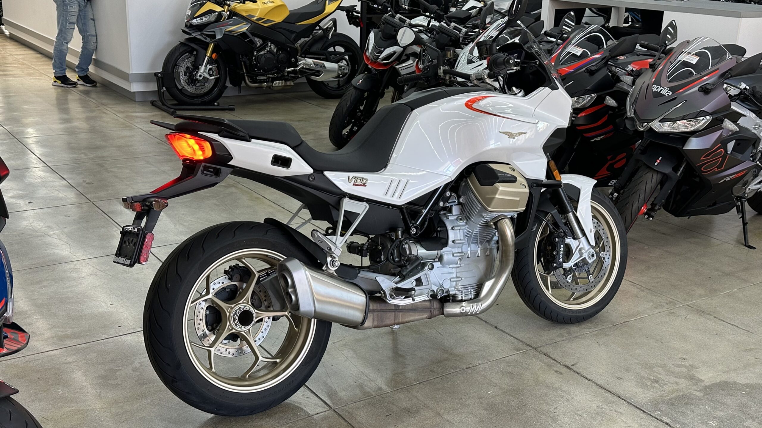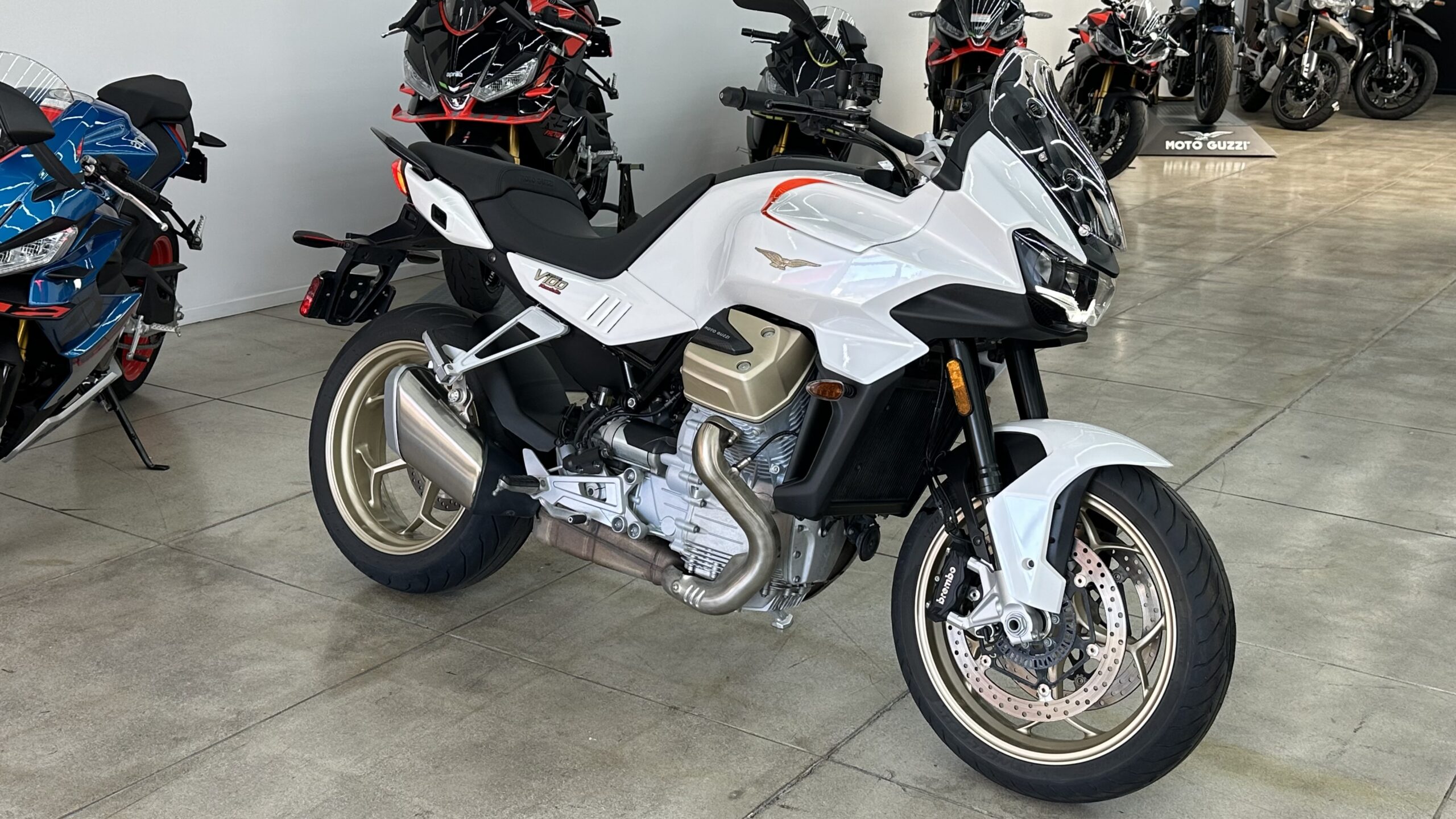 Powered by a 1,042 cc liquid-cooled transverse V-twin, the V100 produces 115 hp and 105 Nm of torque—delivered through a shaft drive for smooth touring and responsive throttle. Its compact wheelbase, sporty chassis geometry, and comfortable riding position make it equally at home on sweeping mountain passes and extended highway rides.
