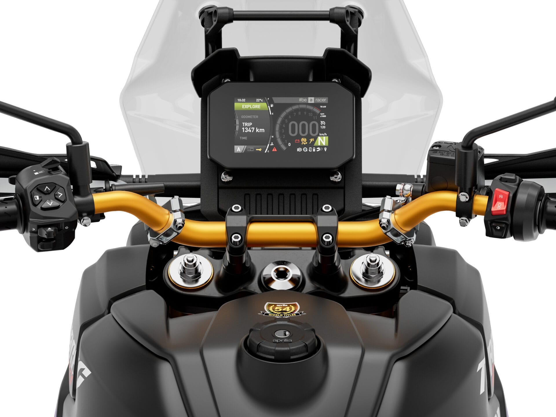 Inspired by Aprilia’s rally raid heritage, the Tuareg Rally 660 features exclusive graphics, a taller, competition-style windscreen, reinforced handguards, and a lightweight aluminum skid plate for extreme protection. The bodywork remains slim for full mobility in technical riding, while rally-specific ergonomics and seat height optimize off-road control. It’s adventure-ready with a racing edge—every line and panel serves the ride.